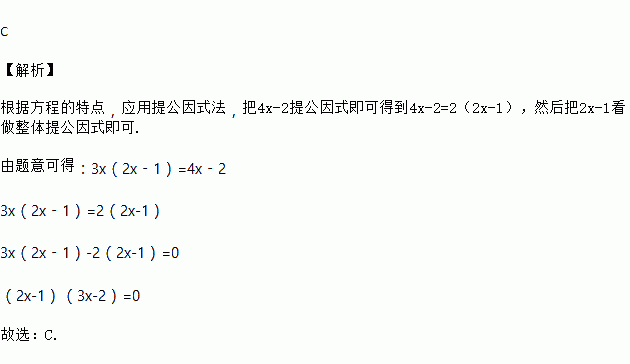 用因式分解法解方程3x(2x﹣1)=4x﹣2,则原方程应变形为( )