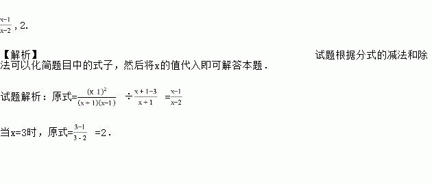 先化简,再求值: ÷(1﹣),其中x=3.