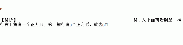 将五个相同的小正方体堆成如图所示的物体,它的俯视图是( )