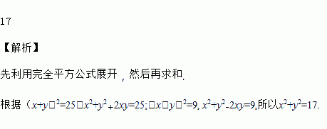 已知(x+y)2=25,(x﹣y)2=9,则x2+y2=_____.