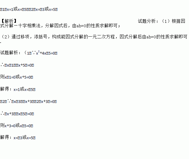 (1)x2+4x﹣5=0;