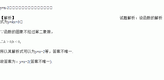 写出一个一次函数,使该函数的图象不经过第二象限___________.