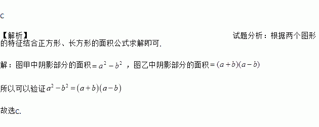 在边长为a的正方形中挖去一个边长为b的小正方形(a>b)(如图1),把余下的部分拼成一个矩形(如图2),根据两个图形中阴影部分的面积相等,可以验证( )