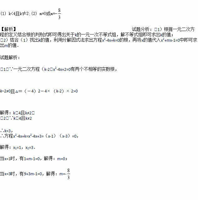 (2)如果k是符合条件的最大整数,且一元二次方程与有一个相同的根,求此时的值.