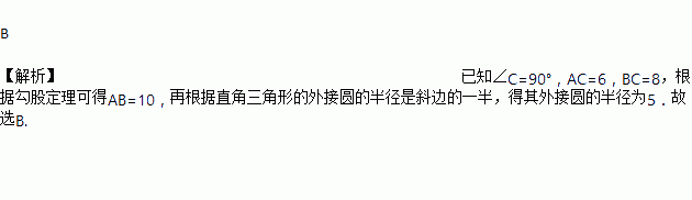 在Rt△ABC中,∠C=90°,AC=6,BC=8,则这个三角形的外接圆的半径是( )