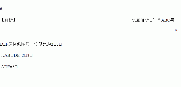 如图,△ABC与△DEF是位似图形,位似比为2:3,已知AB=4,则DE的长为_____.