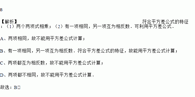 下列多项式的乘法中可用平方差公式计算的是( )