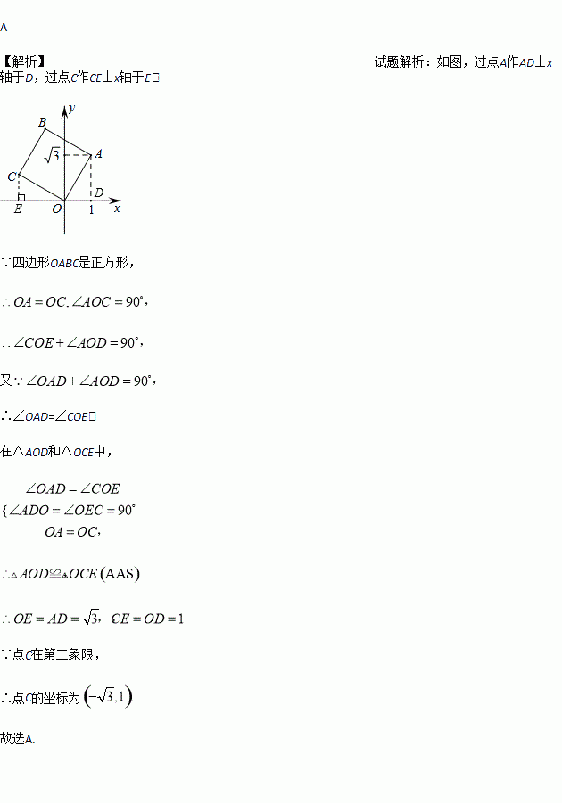 如图,将正方形OABC放在平面直角坐标系中,O是原点,A的坐标为(1,