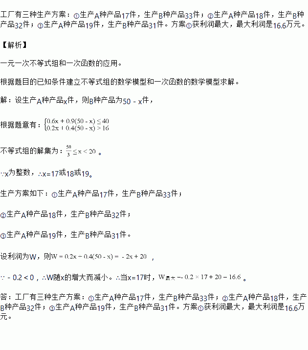 若该工厂计划投入资金不超过40万元,且希望获利超过16万元,问工厂有哪几种生产方案?哪种生产方案获利润最大?最大利润是多少?