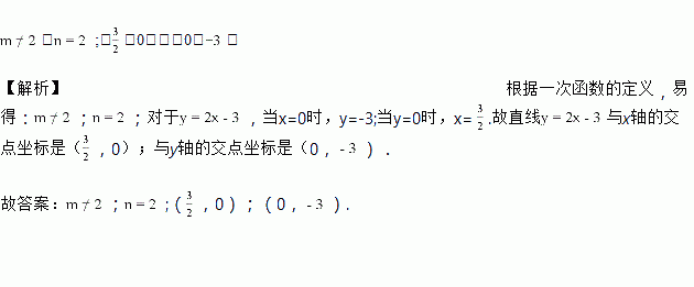 已知是关于x的一次函数,则m ,n .直线与x轴的交点坐标是__________,与y轴的交点坐标是__________.