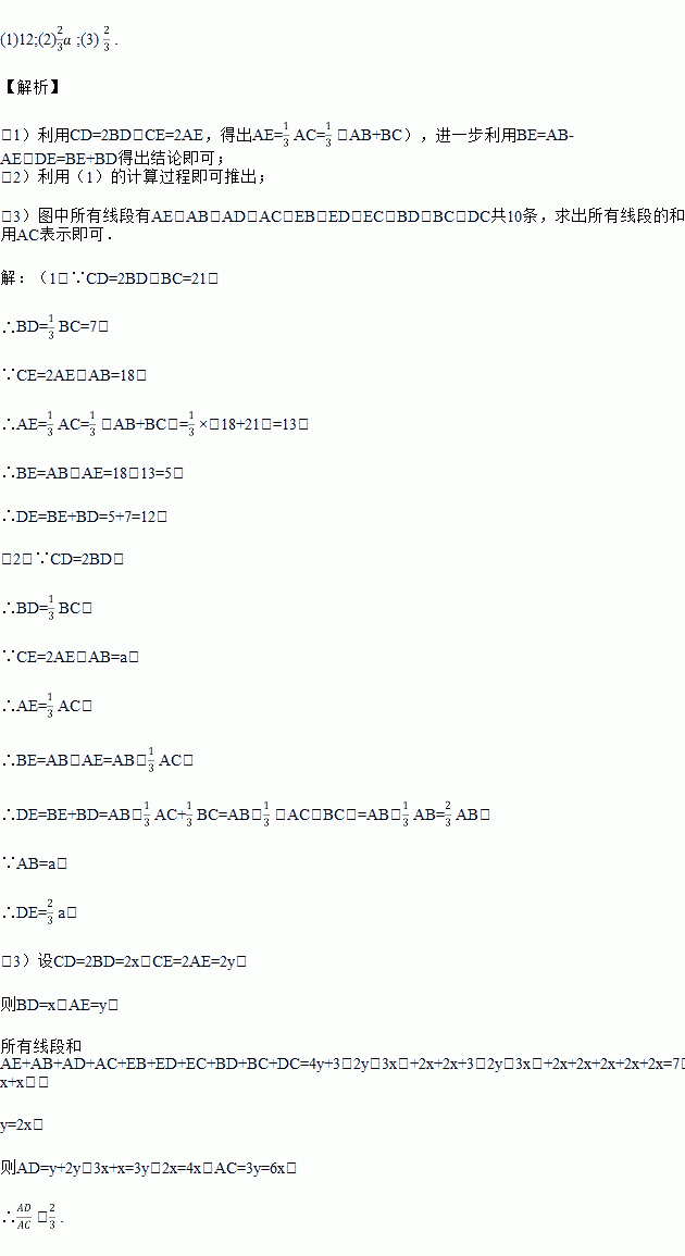 如图,C为线段AB延长线上一点,D为线段BC上一点,CD=2BD,E为线段AC上一点,CE=2AE