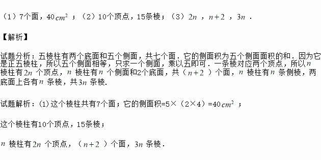 (1)这个棱柱共有多少个面?计算它的侧面积;