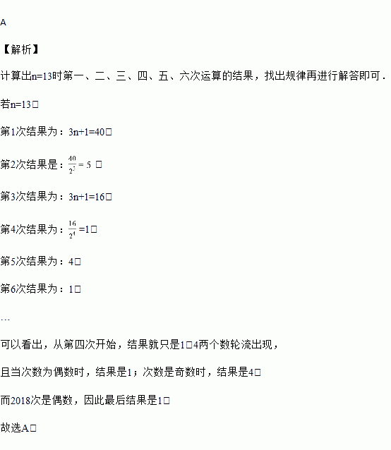 若n=13,则第2018次“F”运算的结果是( )