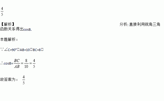 Rt△ABC中,∠C=90°,AB=10,BC=8,求cosB的值.
