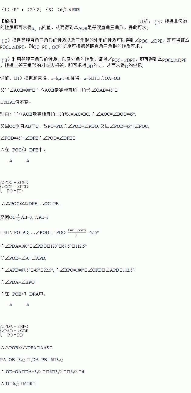 =0,C为AB的中点,P是线段AB上一动点,D是x轴正半轴上一点,且PO=PD,DE⊥AB于E.