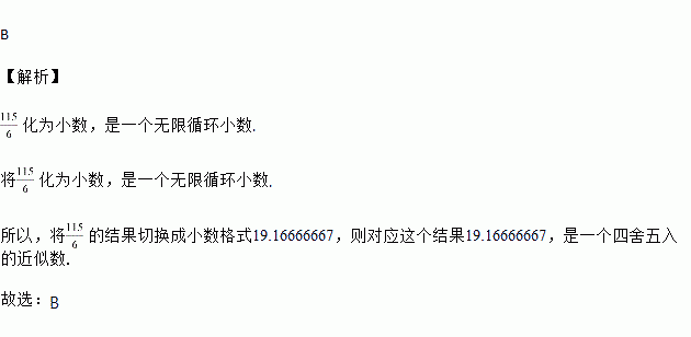 的结果切换成小数格式19.16666667,则对应这个结果19.16666667,以下说法错误的是( )