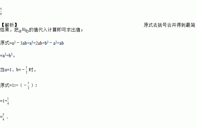 先化简,再求值:a(a﹣3b)+(a+b)2﹣a(a﹣b),其中a=1,b=﹣