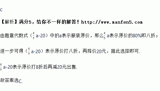 C. 将原价打8折之后,再降低20元 D. 将原价打2折之后,再降低20元