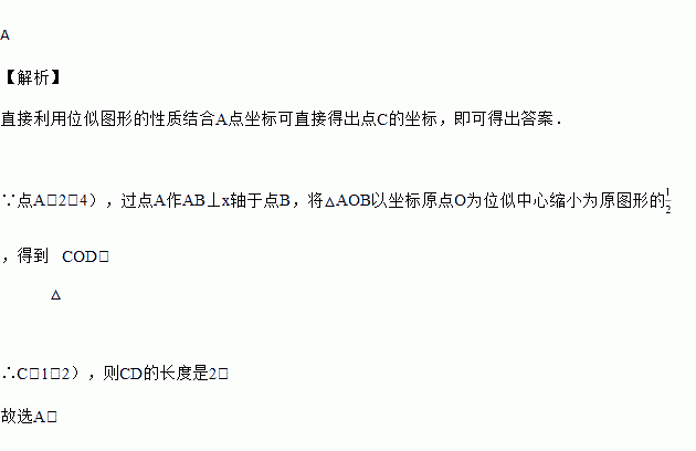 如图所示,在平面直角坐标系中,已知点A(2,4),过点A作AB⊥x轴于点B.将△AOB以坐标原点O为位似中心缩小为原图形的