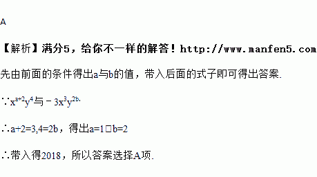 若xa+2y4与﹣3x3y2b是同类项,则2018(a﹣b)2018的值是( )
