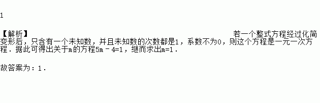 已知x5m﹣4+=2是关于x的一元一次方程,那么m= ________.