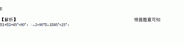 如图,把一块含有45°角的直角三角板的两个顶点放在直尺的对边上.如果∠1=20°,那么∠2的度数是( )