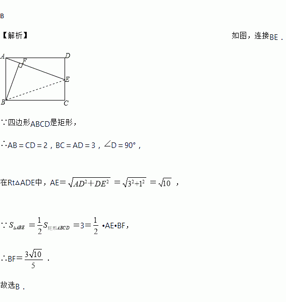 如图,在矩形ABCD中,AB=2,BC=3.若点E是边CD的中点,连接AE,过点B作BF⊥AE交AE于点F,则BF的长为( )