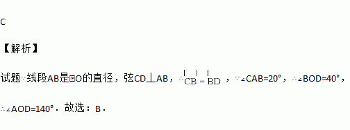 如图,线段AB是⊙O的直径,弦CD⊥AB,∠CAB=20°,则∠AOD等于( )