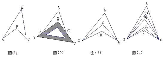 ③如图4,∠ABD,∠ACD的10等分线相交于点G1、G2…、G9,若∠BDC=140°,∠BG1C=77°,求∠A的度数.