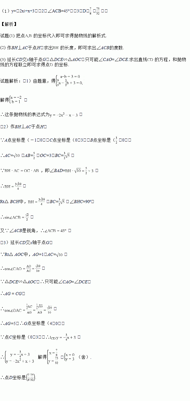 (3)设点D是所求抛物线第一象限上一点,且在对称轴的右侧,点E在线段AC上,且DE⊥AC,当△DCE与△AOC相似时,求点D的坐标.