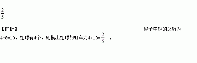 在一个不透明的口袋中,装有4个红球和6个白球,除顔色不同外其余都相同,从口袋中任意摸一个球摸到的是红球的概率为 .