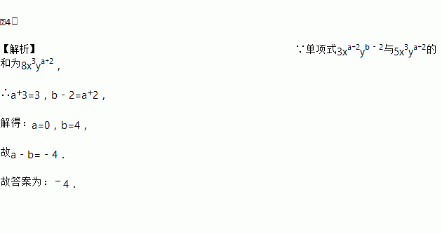 如果单项式3xa+2yb﹣2与5x3ya+2的和为8x3ya+2,那么a﹣b=_____.