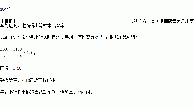 根据上述信息,求小明乘坐城际直达动车到上海所需的时间.