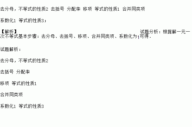 解含有分母的一元一次不等式解集步骤如下请在前面括号填步骤后面括号填理由:解不等式