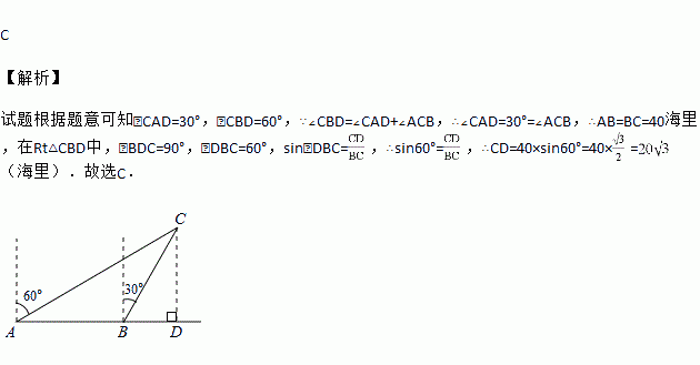 A. 20海里 B. 40海里 C.