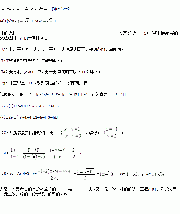 (5)解方程:x2 - 2x +4 = 0