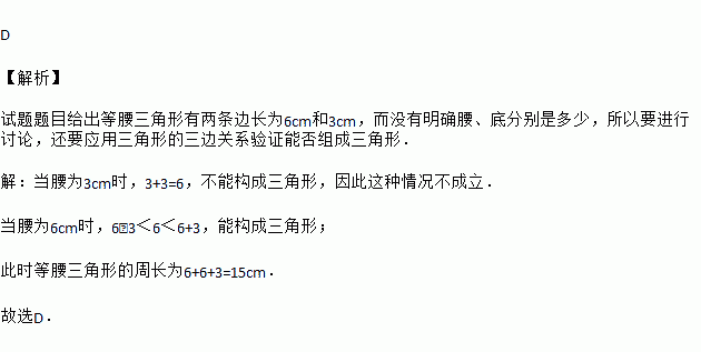等腰三角形的两边长是6cm和3cm,那么它的周长是