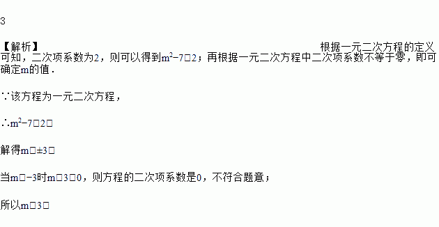 若关于x的方程(m+3)+(m-3)x+2=0是一元二次方程,则m的值为________.