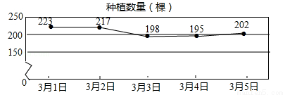 2016年3月1日,某园林公司派出一批工人去完成种植2200棵景观树木的任务,这批工人3月1日到5日种植的数量(单位:棵)如图所示.
