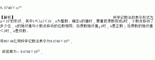 莆田市2017年上半年GDP增长再创新高,据统计全市实现生产总值907.48亿元,用科学计数法表示为______________________元。
