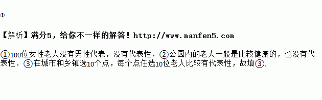 为了解佛山市老人的身体健康状况,在以下抽样调查中,你认为样本选择较好的是_________(填序号):①抽取100位女性老人;②公园内随机抽取100位老人;③在城市和乡镇选10个点,每个点任选10位老人.