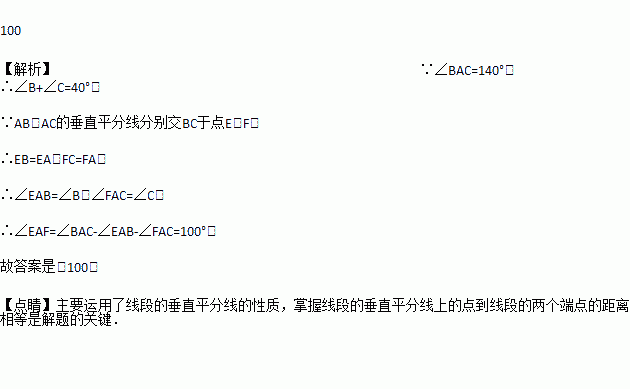 如图,在△ABC中,AB,AC的垂直平分线分别交BC于点E,F,若∠BAC=140°,