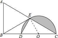 (2)求图中阴影部分的面积即转化为:S阴影=S半圆-S△DEC,所以利用圆的面积公式和三角形的面积公式分别求出其面积作差即可.