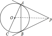分析:(1)根据切线长定理推出AP=BP,根据等腰三角形性质和三角形的内角和定理求出∠PAB=60°,求出∠PAO=90°即可;