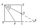 分析:延长AQ交BC的延长线于E,根据四边形ABCD是正方形,得到AD=CD,AD∥BE.再求出△ADQ与△ECQ关于点Q成中心对称,则有AD=CE,∠1=∠E.所以∠2=∠E即∠1=∠2,即可证明AQ平分∠DAP.