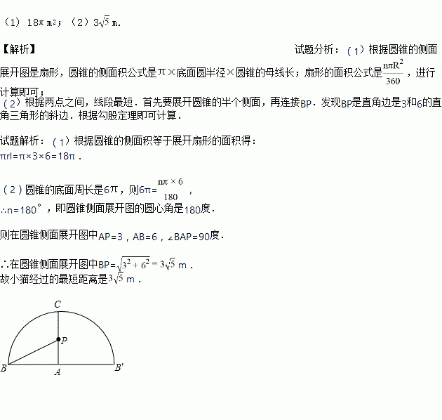 (2)母线AC的中点P处有一老鼠正在偷吃粮食,小猫从B处沿圆锥表面去偷袭老鼠,求小猫经过的最短路程。 (结果不取近似数)