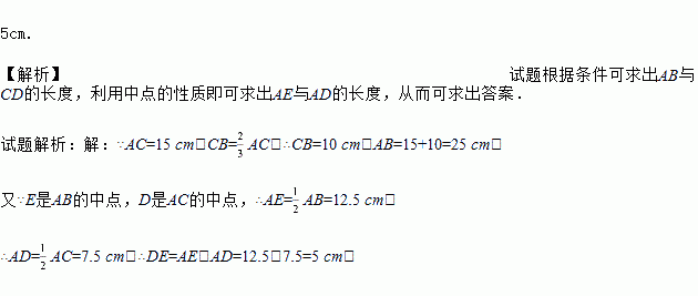 如图,已知点C为AB上一点,AC=15cm,CB=AC,若D、E分别为AC、AB的中点,求DE的长.