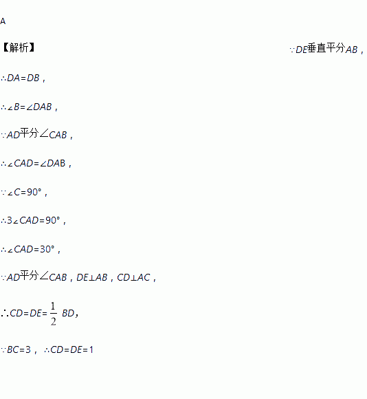 如图,在中, , 的平分线交于, 是的垂直平分线,垂足为,若,则的长为( ).