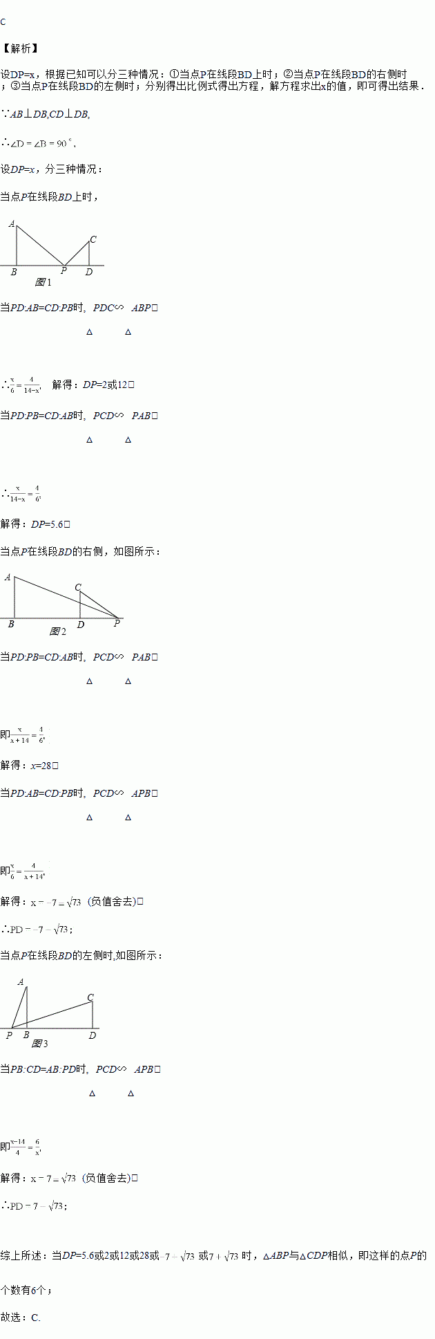 已知点,在直线的同侧,且于,于,,,,现有点在直线上,并且满足与相似,则这样的点的个数为( )