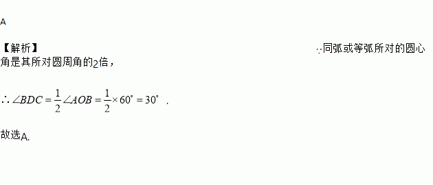 A 【解析】∵同弧或等弧所对的圆心角是其所对圆周角的2倍, ∴ . 故选A.
